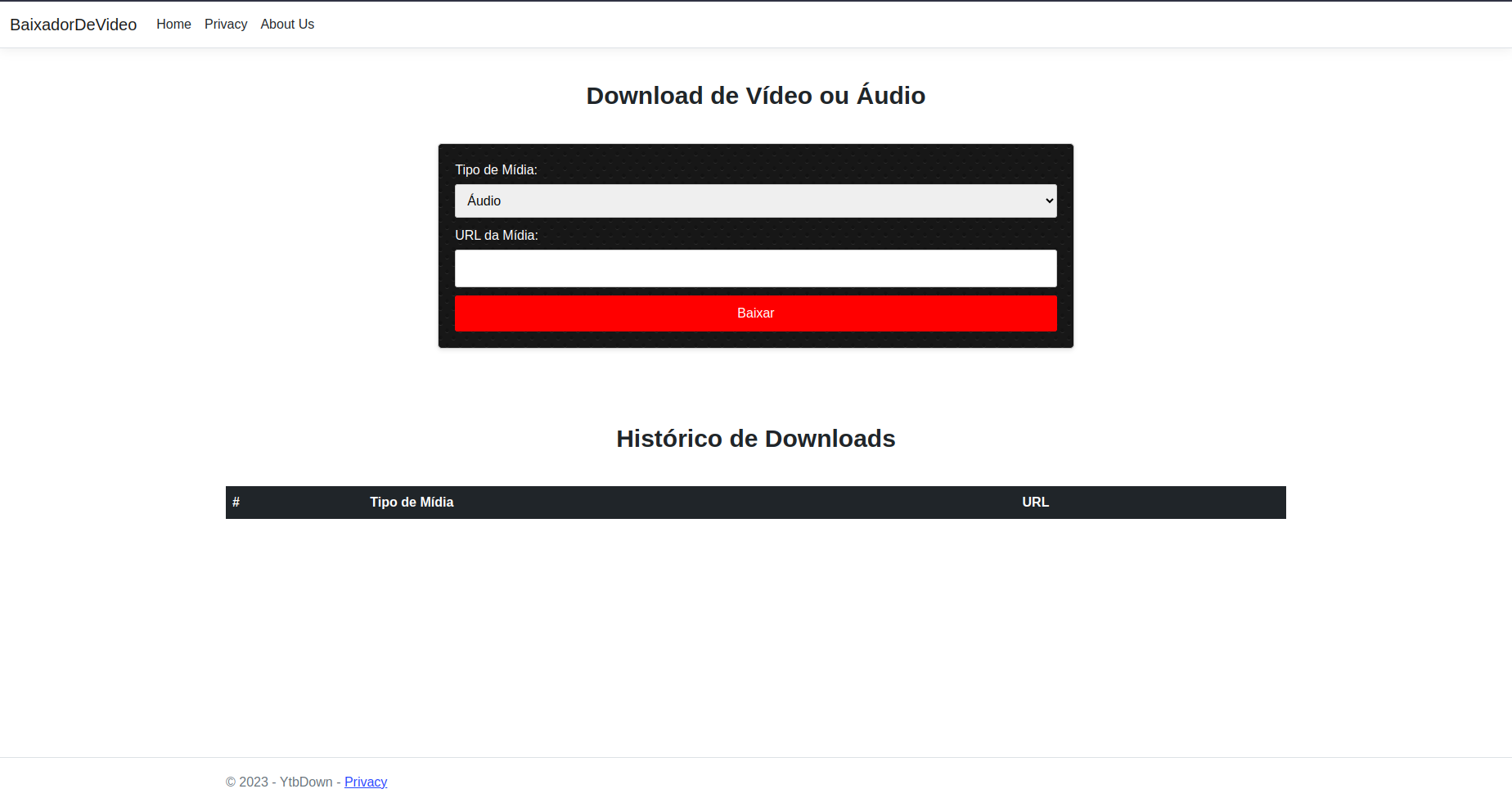 Utilizamos a biblioteca YouTubeExplode para fazer o download de arquivos .mp3 e .mp4 de vídeos do YouTube. A página inicial é essa:
